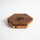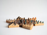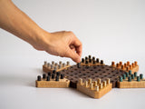 Also know as Chinese Checkers, this compacted design, elegantly and efficiently self contained unit highlighted the intricate geometries hidden within. The game experience elevated through tactility of the materials.